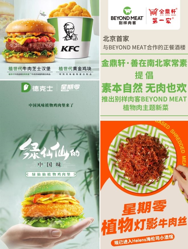 舉例佐證:別樣肉客進(jìn)入中國市場后,通過與肯德基合作,推出“植培黃金雞塊”、“植世代系列漢堡”等,快速打響名聲;深圳本土植物肉企業(yè)星期零,先后與麥肯、漢堡王、瑞幸、奈雪等餐飲品牌合作,推出“植物漢堡”、“植物蒸餃”等產(chǎn)品。