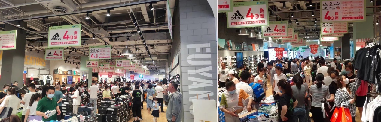 4000+品牌悉數(shù)參與年中大促活動,其中聯(lián)合耐克、阿迪達(dá)斯、李寧、安踏、周大福、周生生、百麗、巴拉巴拉等百余頭部品牌,當(dāng)季貨品全面上新,高性價比商品“遍地開花”,同時推出蘇寧百貨會員專屬力度,截止19日,周大福/周生生同比銷售提升46%,阿迪達(dá)斯/耐克銷售同比提升45%,李寧/安踏銷售同比提升56%,巴拉巴拉銷售同比提升38%,其中阜陽項(xiàng)目聯(lián)合阿迪達(dá)斯開展品牌售罄活動,6月1日-6月5日總計銷售突破400W,合計銷售6092件商品,充分喚醒消費(fèi)者購物熱情。