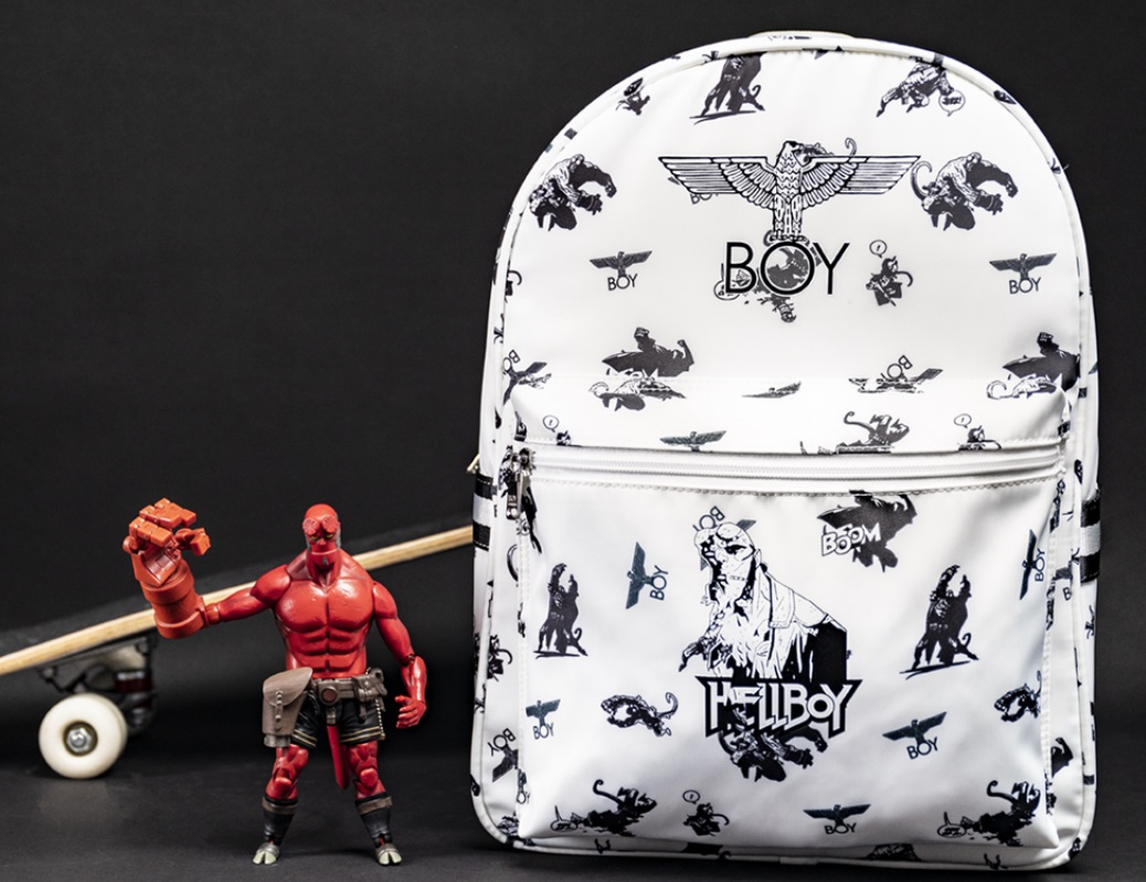 除了愛屋及烏的明星引爆外,跨界聯(lián)名也是BOY的營銷利器,相較于大多數(shù)潮牌它的動作更大開大合。2019年,BOY與美國黑馬漫畫旗下超級英雄地獄男爵(Hellboy)聯(lián)動,跨次元打入年輕消費者的文化圈。
