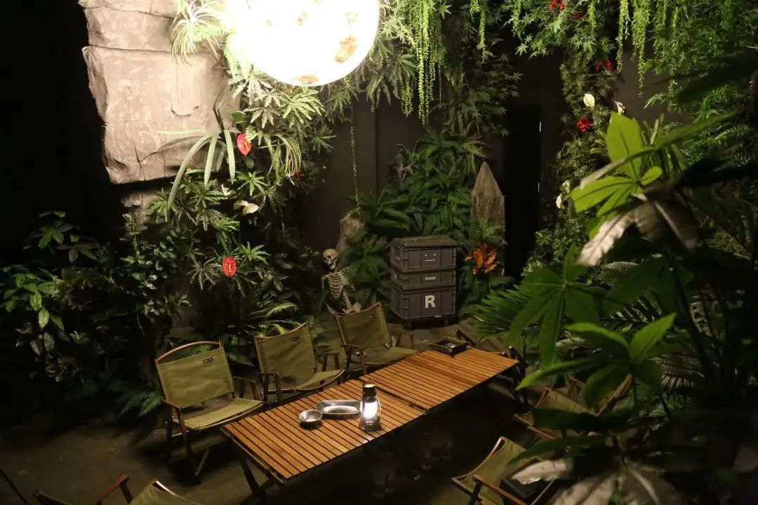 長沙心來劇本殺主理人李宇辰向開菠蘿財經(jīng)介紹,其門店內(nèi)的露營房,是在室內(nèi)空間先通過泥塑做出山石造型,再請園藝師進行綠化置景,配備帳篷、天幕、露營椅等露營裝備,讓玩家有一種身臨戶外的感覺,但同時又可以免于惡劣天氣、嘈雜環(huán)境的困擾。