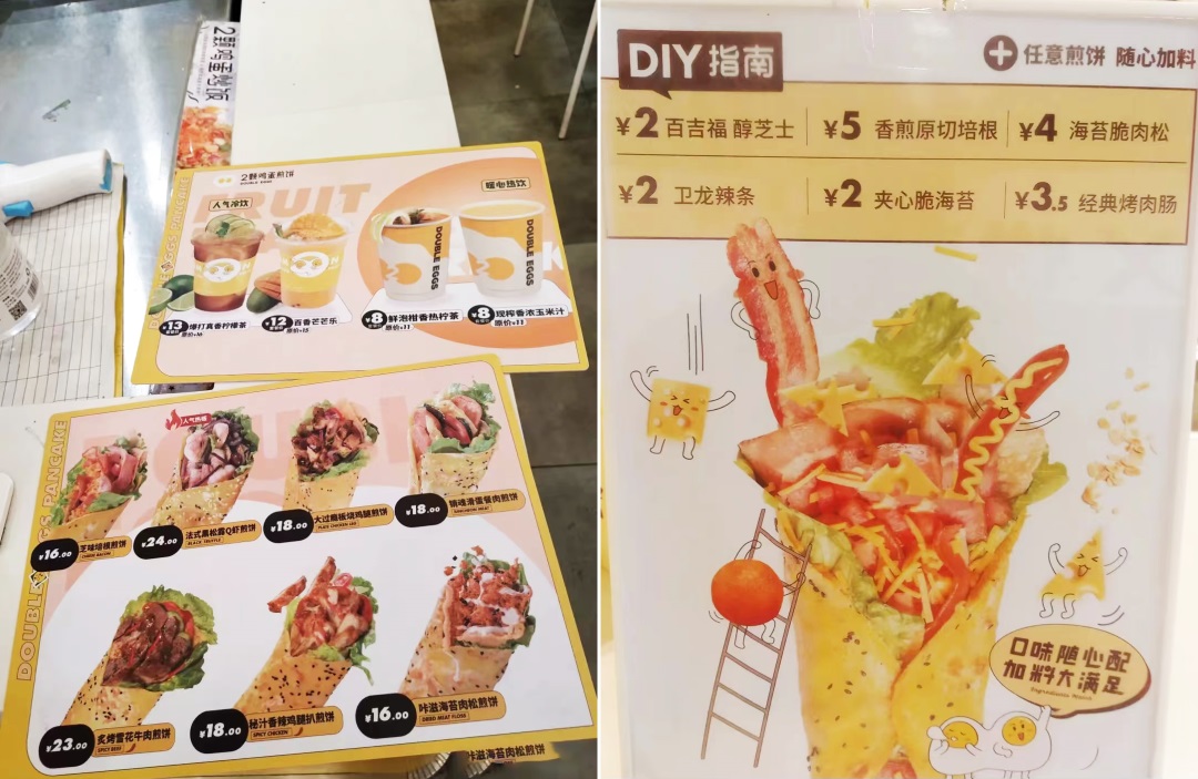 于是,主打“傳統(tǒng)煎餅果子改良升級(jí)”的“2顆雞蛋”誕生了,“煎餅+小龍蝦、芝士、培根”這樣的特色,在當(dāng)年煎餅賽道一眾的競(jìng)爭(zhēng)對(duì)手中脫穎而出。