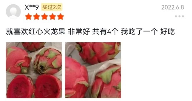 618前后,也是南方熱帶水果集中成熟上市的季節(jié),消費(fèi)需求高漲。為了刺激消費(fèi)持續(xù)復(fù)蘇,助力農(nóng)民增收致富,美團(tuán)優(yōu)選開(kāi)啟2022年第二場(chǎng)“熱帶水果節(jié)”促銷活動(dòng)。通過(guò)“南果北運(yùn)”,將廣西“南寧火龍果”等國(guó)家地理標(biāo)志性農(nóng)產(chǎn)品送往北方縣城與鄉(xiāng)村。一位黑龍江齊齊哈爾泰來(lái)縣的消費(fèi)者,通過(guò)美團(tuán)優(yōu)選買到廣西紅心火龍果。兩斤4個(gè)火龍果才12元錢,新鮮且便宜。