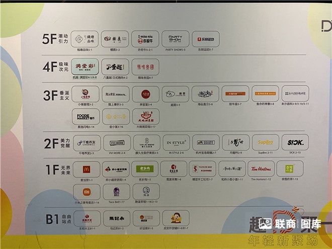 看下五個商業(yè)樓層的實(shí)際品牌落位情況: