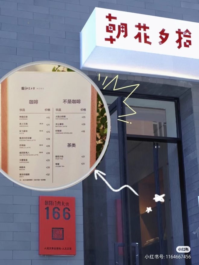 據(jù)悉,該文創(chuàng)咖啡店位于北京市朝陽門內(nèi)大街166號,人民文學(xué)出版社樓下,全名為朝花夕拾文創(chuàng)咖啡供銷社,顧名思義供銷“咖啡”與“文創(chuàng)”。