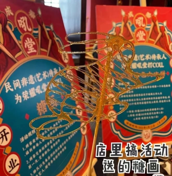 吼堂深挖蜀地文化,不僅在產(chǎn)品、場(chǎng)景、儀式上發(fā)揮得淋漓盡致,這次的新款飲品也很有成都的感覺,在這里,還能看到小時(shí)候的糖畫、捏泥人等元素,把非遺文化搬了進(jìn)來;