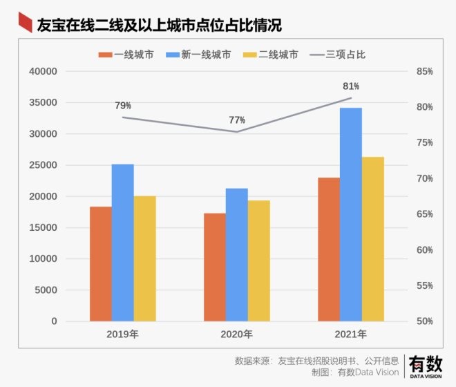 2020年及以前,由于友寶大多數(shù)點(diǎn)位為直營模式,并且為了更好的享受人力成本紅利,接近80%的點(diǎn)位布局在二線及新一線城市。