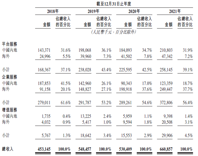 具體來看,快狗打車目前涵蓋三大業(yè)務(wù),分別為平臺服務(wù)、企業(yè)服務(wù)、增值服務(wù)。其中,平臺服務(wù)通過在平臺上匹配司機(jī)及托運(yùn)人,促進(jìn)按需同城物流,2021年該業(yè)務(wù)占總收入的39.1%;企業(yè)服務(wù)則是為企業(yè)客戶提供計劃及按需同城物流服務(wù),2021年該業(yè)務(wù)占比56.4%,撐起了營收的半壁江山;剩下的4.5%即為增值服務(wù)。