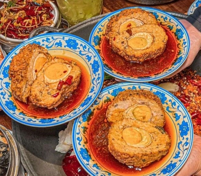 其實,肉丸和虎皮雞蛋都是很常見的食材,后火鍋卻把兩者相結(jié)合,超乎了想象,碰撞出了不一樣的火花。