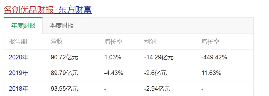 據(jù)財(cái)報(bào)顯示,2018-2020財(cái)年名創(chuàng)優(yōu)品的總營收分別為93.95億元、89.79億元和90.72億元,三年間凈虧損分別為2.94億元、2.60億元和14.29億元,累計(jì)虧損19.83億元。其中受疫情影響,2020財(cái)年同比虧損近450%。