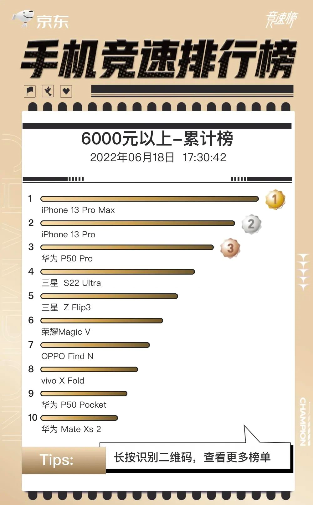 在今年京東618高端手機(jī)(6000元以上)排行榜上,除了華為之外,榮耀Magic V、OPPO Find N和vivo X Fold赫然在列,位列第七、第八和第九。