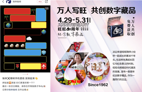 圖片來(lái)源:小紅書@瑞幸咖啡、微博@旺仔俱樂(lè)部