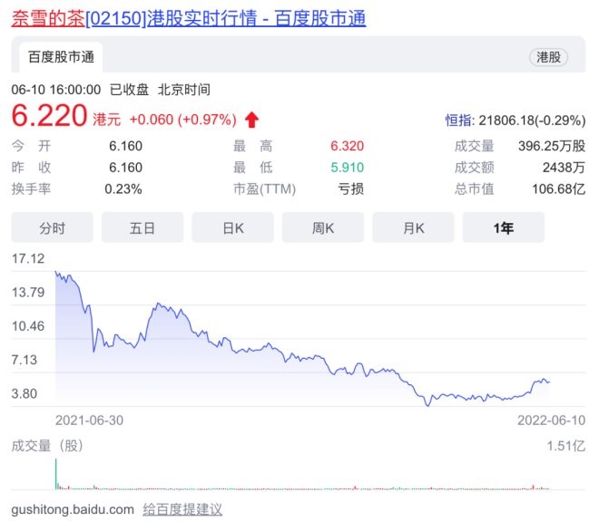 財報顯示,2021年,奈雪的茶虧損1.45億元。股價從上市時的17.12港元/股下跌到如今的6港元/股左右,跌幅為65%左右。也正由此,有心沖擊IPO的喜茶在2022年初不光主動降價,告別“30元”價位段,甚至還推出了客單價僅為個位數(shù)的飲品。