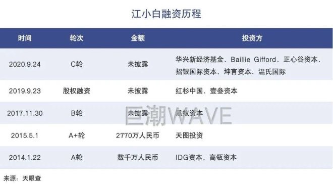 資本自然也聞風(fēng)而動(dòng)。天眼查數(shù)據(jù)顯示,2014年到2020年間,江小白共完成5輪融資,投資方不乏高瓴、紅杉、IDG、Baillie Gifford等明星機(jī)構(gòu)。據(jù)36氪報(bào)道,2020年的C輪投后估值或?qū)⒊^(guò)130億元人民幣。