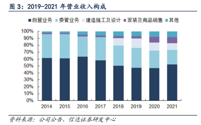 2021年,紅星美凱龍的業(yè)績大頭仍然是自營商場,同比增長21.1%,占總收入比重從2020年的46.9%擴大到52.2%;委管商場這廂,包括項目前期品牌咨詢委托管理服務收入、項目年度品牌咨詢委托管理服務收入、商業(yè)咨詢費及招商傭金等,總收入為32.56億元,較上年減少9.1%。
