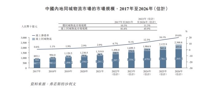 同城貨運的市場需求到底有多大?快狗招股書顯示,到2026年,全國同城物流市場將突破2萬億元。但在龐大的市場規(guī)模下,目前,同城貨運的線上滲透率僅為2.9%。
