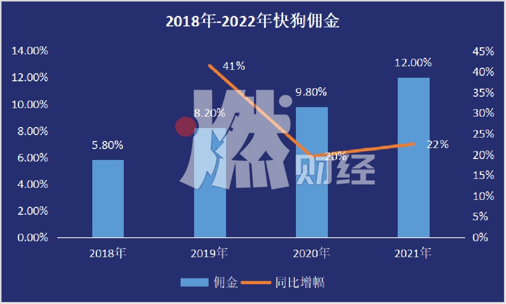 如上述人士所說,2018年到2021年,快狗對司機的抽傭金比例分別為5.8%、 8.2%、9.8%及12.0%。自2019年開始,較前一年分別有41%、22%和20%的同比增幅。