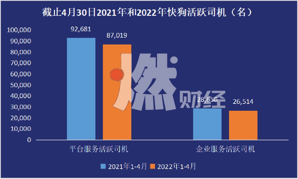 在超九成司機變?yōu)椤俺恋硭緳C”的同時,快狗活躍司機同樣在減少。招股書中,2022年4月,活躍司機較去年呈現(xiàn)同比下降趨勢。平臺服務(wù)活躍司機同比下降6%,企業(yè)服務(wù)活躍司機同比則下降7%。