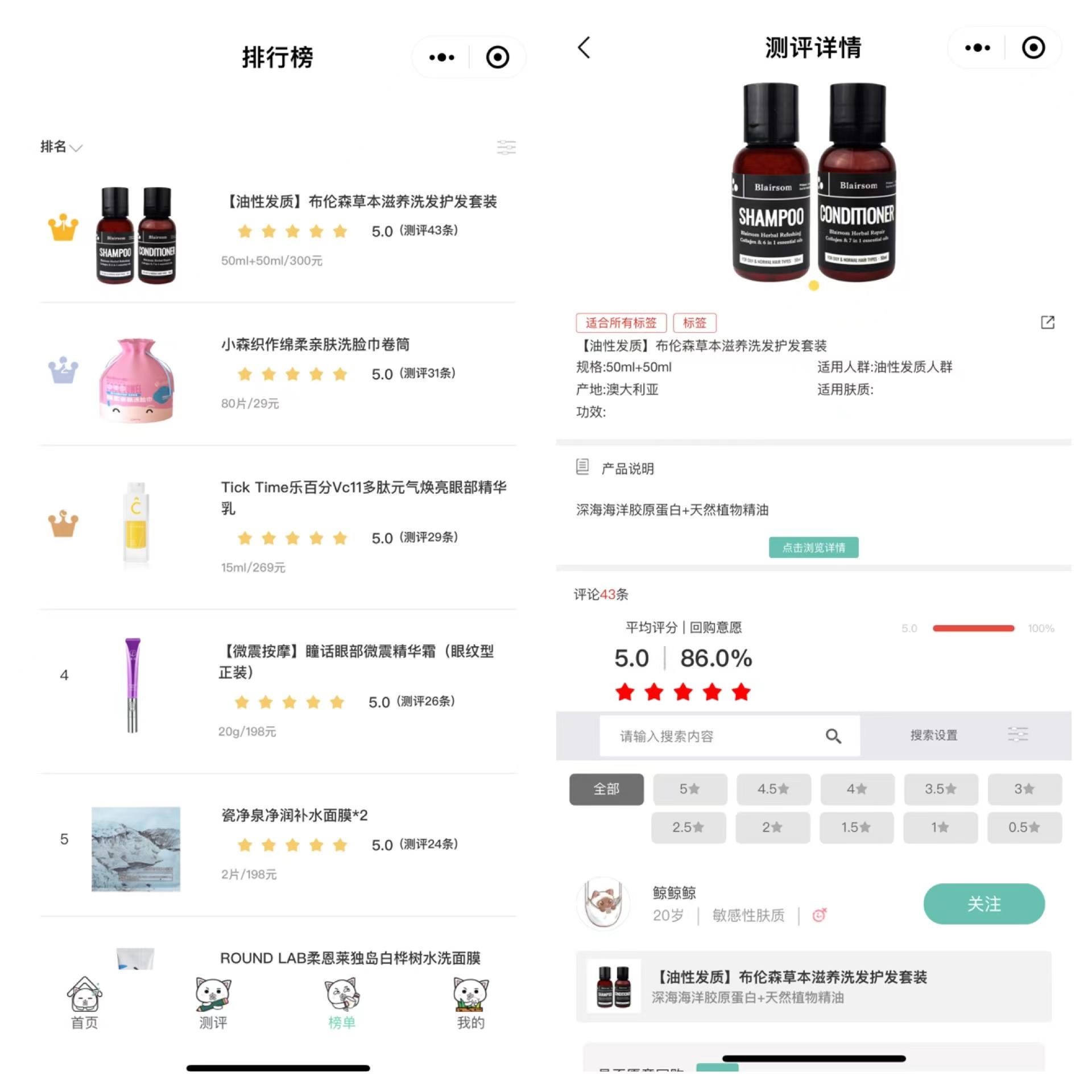 具體來說,集小美邀請B端美妝品牌入駐,并將其提供的中小樣、正裝美妝產(chǎn)品,由集小美進行領用招募、產(chǎn)品派發(fā),用戶基于肌膚問題、美妝功能興趣點、職業(yè)類型等14種數(shù)據(jù)維度,生成獨立的試用反饋報告。前述所得評測結(jié)果,集小美還會進行匯總整理,以美妝產(chǎn)品好評排行榜進行呈現(xiàn)。