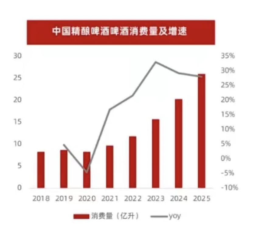 而精釀啤酒由于生產(chǎn)周期更長(zhǎng),制作工藝更精細(xì),既可釀造出不同的口味,又能保留醇厚的口感,因此俘獲了更多的年輕消費(fèi)者,在整個(gè)啤酒行業(yè)中的消費(fèi)量逆勢(shì)而上,成為啤酒中當(dāng)之無(wú)愧的潛力股。根據(jù)灼鼎咨詢公布的數(shù)據(jù)顯示,預(yù)計(jì)2025年,中國(guó)精釀啤酒消費(fèi)量可達(dá)25億升,同比增長(zhǎng)近30%。