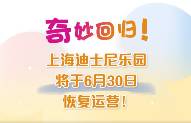 6月28日,上海迪士尼度假區(qū)發(fā)布消息稱,上海迪士尼樂園將于6月30日正式恢復(fù)營業(yè),門票和年卡預(yù)約將于6月29日起重新啟動。