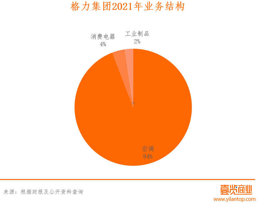 2021年格力空調(diào)收入1317億元,營收占比70%;生活電器收入48億元,營收占比2.6%,工業(yè)制品收入31.9億元,營收占比1.7%。格力的營收過于單一,僅靠空調(diào)業(yè)務(wù)撐起市值,其他業(yè)務(wù)項目前還未看出發(fā)展的潛力;而美的消費電器和機器人自動化系統(tǒng)業(yè)績凸顯,讓美的和格力拉開不小的差距。