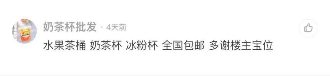最近,李離注意到,連自己寶貝的留言區(qū)都有“二手商販”的身影。因?yàn)闉g覽二手奶茶設(shè)備的人,是他們的精準(zhǔn)目標(biāo)客戶,因此他們會在一些寶貝的留言區(qū),宣傳自己的設(shè)備,同時(shí)還不忘感謝一下樓主。