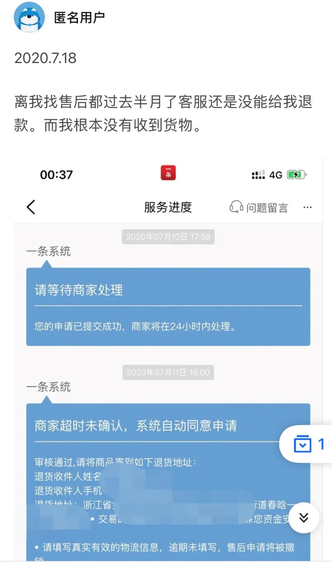 線上購物很重要的一環(huán)就是售后服務(wù),因?yàn)橘徺I者購物前很多時(shí)候是無法親身體驗(yàn)的,出現(xiàn)問題需要客服很快解決問題。而一條在這一過程中僅僅起到商家與消費(fèi)者間傳話的作用。
