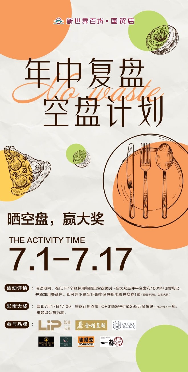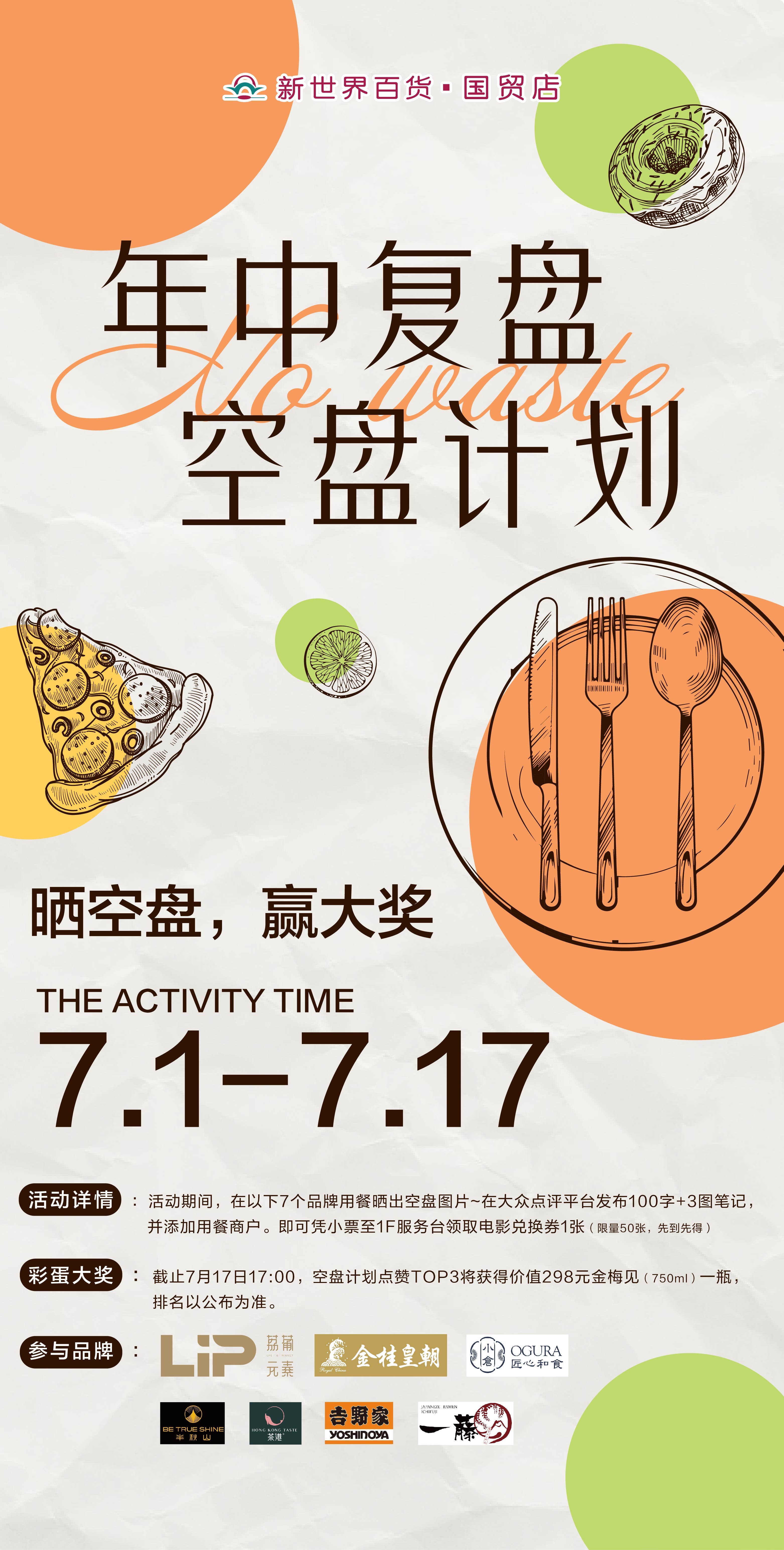 7月,新世界百貨武漢建設(shè)店還將延續(xù)年中復(fù)“盤”話題熱度,加碼興趣營(yíng)銷,再聯(lián)動(dòng)場(chǎng)內(nèi)8大餐飲品牌,開啟為期17天的“空盤計(jì)劃”。會(huì)員可在大眾點(diǎn)評(píng)平臺(tái)參與武建設(shè)店開設(shè)的“曬空盤行動(dòng)”有獎(jiǎng)互動(dòng),參與即可贏得電影票。