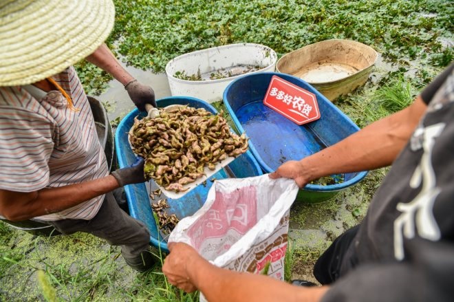 采購量穩(wěn)定后,很多以前養(yǎng)魚、養(yǎng)蝦、種田的農(nóng)民們,也選擇了種菱角。還有賦閑在家的村民,靠著采菱手藝做起了“兼職”,一個熟手一天能采一百多斤菱角,整個收獲季,能賺上三四萬元,順利實現(xiàn)了增收。