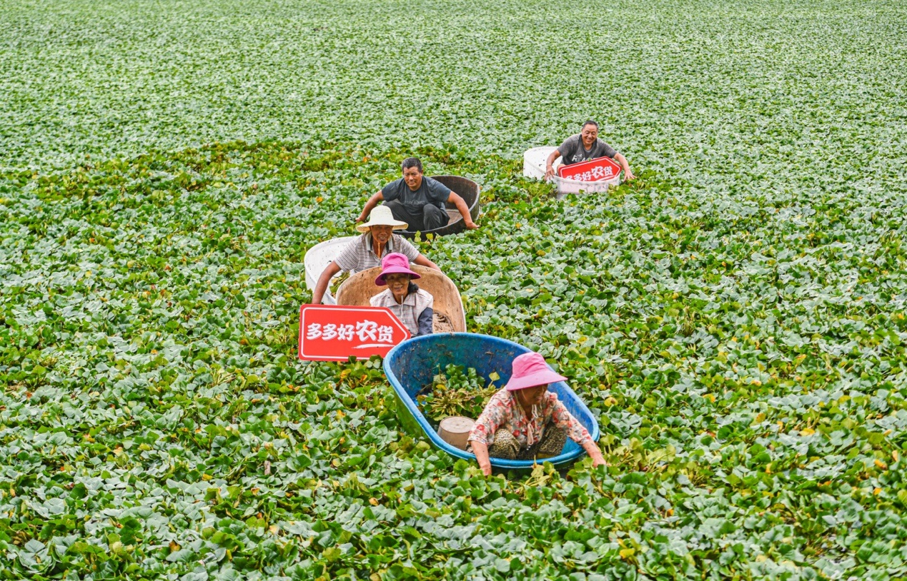 湖北省洪湖市商務局局長李華學介紹,乘著新電商東風,近年來,洪湖“荷塘三寶”日益受到全國消費者喜愛。以洪湖蓮藕為例,目前野生蓮藕面積約10萬畝,人工種植蓮藕面積約20萬畝,蓮藕年綜合產(chǎn)值達50億元。其中,電商銷售占比約五分之一,“近年來,拼多多等電商平臺,對推動洪湖蓮藕的產(chǎn)業(yè)發(fā)展起到了較大作用,洪湖蓮藕在全國享有盛譽,未來種植面積及產(chǎn)值將努力向全國第一的目標邁進”。
