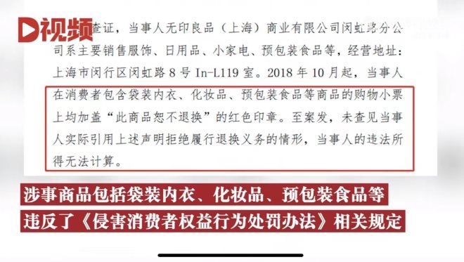 無印良品因標(biāo)注內(nèi)衣不退還被罰