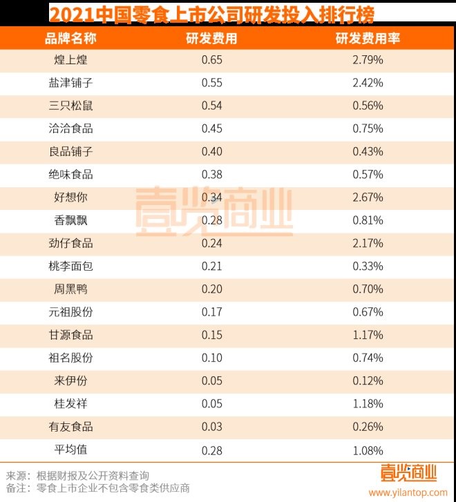 2021中國零食上市公司研發(fā)投入排行榜:煌上煌投入最高