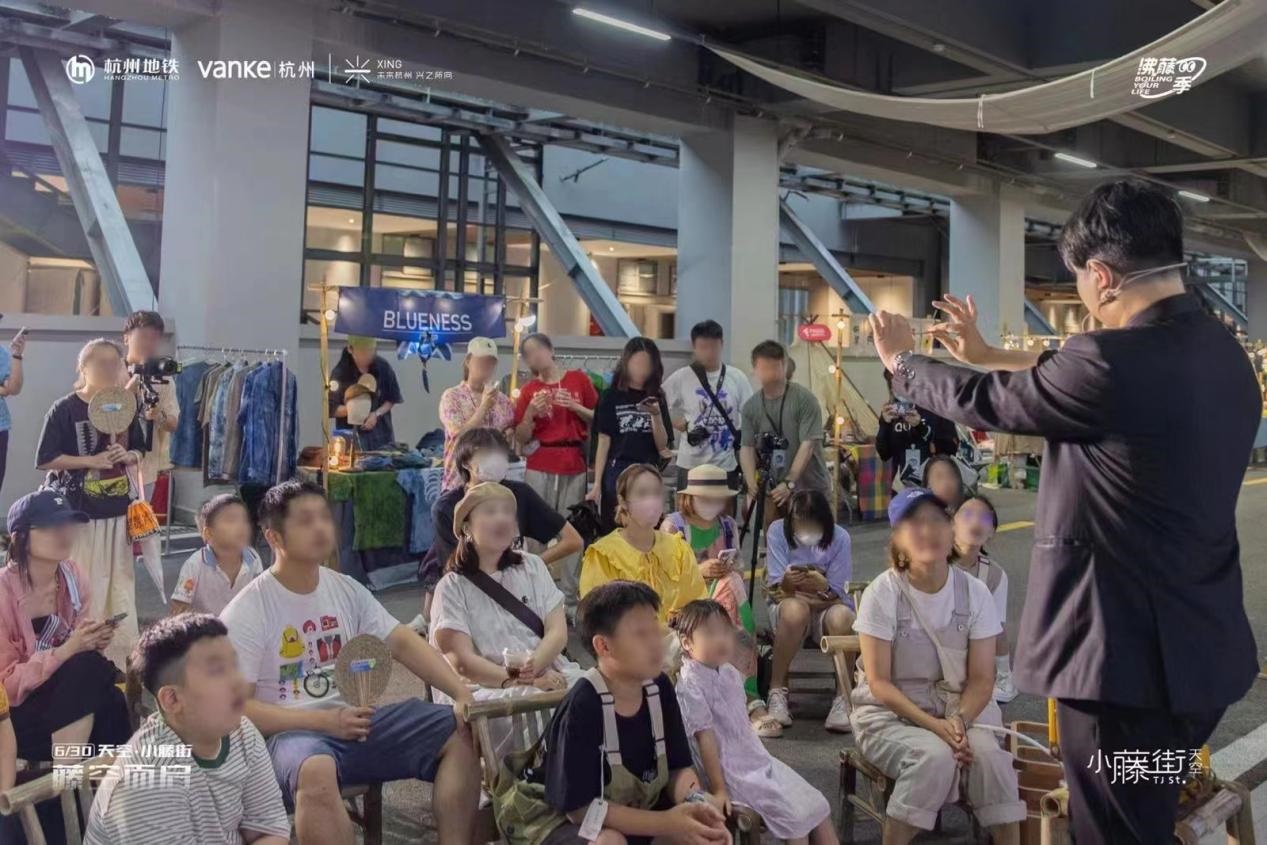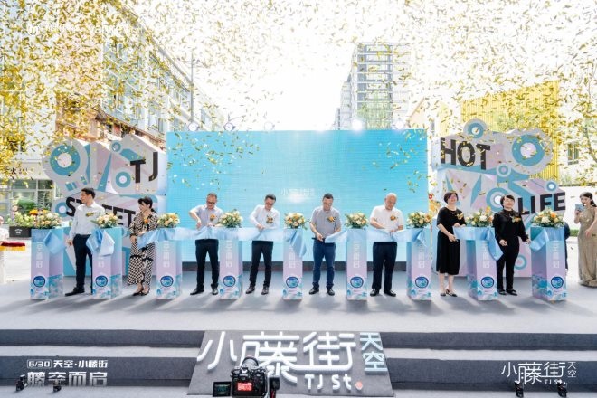 作為「五常車輛段上蓋項(xiàng)目」的社區(qū)商業(yè)縮影,天空·小藤街以社區(qū)商街為載體、地鐵5號(hào)線五常站為接口,結(jié)合跨界藝文“出圈”的形式,于杭州城市發(fā)展圖景中嵌入了一片閃耀的拼圖,在6月30日開街儀式上,點(diǎn)燃全城激情。