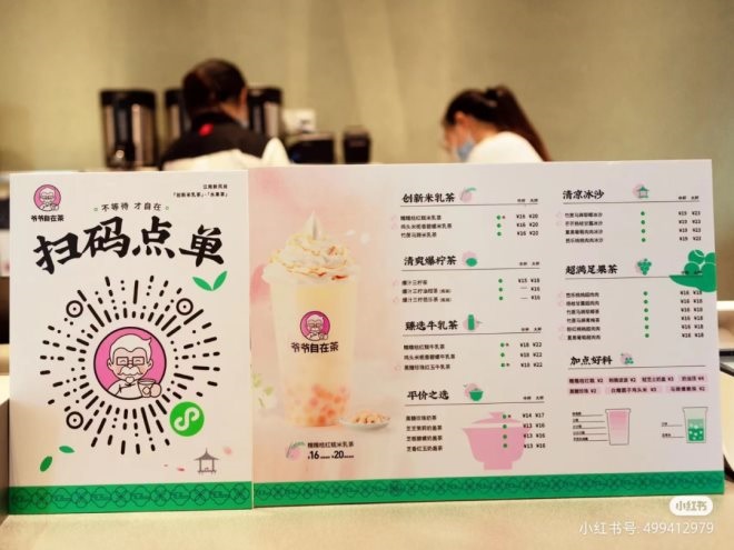 從門(mén)店菜單看,在創(chuàng)新茶飲米乳茶之外,爺爺自在茶的飲品,更像是肯德基茶飲菜單自立門(mén)戶后的翻版。