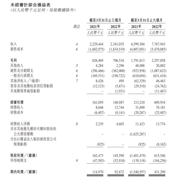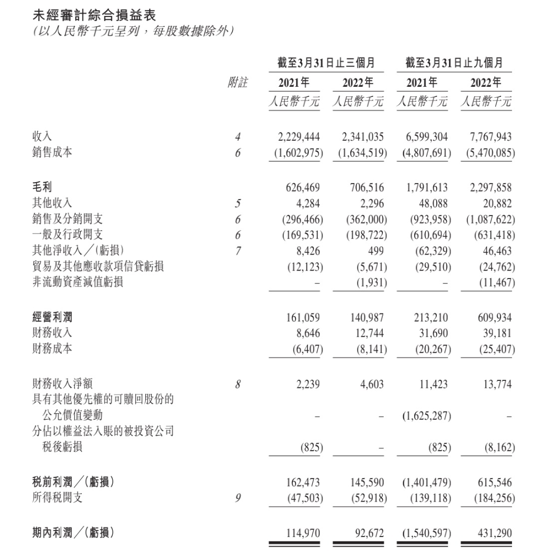 在疫情對發(fā)力線下的名創(chuàng)優(yōu)品帶去一定影響的情況下,營收層面還算不錯,2022財年第三財季,名創(chuàng)優(yōu)品集團總營收達23.4億元人民幣,同比增長5%。只是,與營收向好形成對比的,則是利潤和凈利潤的雙雙下滑。