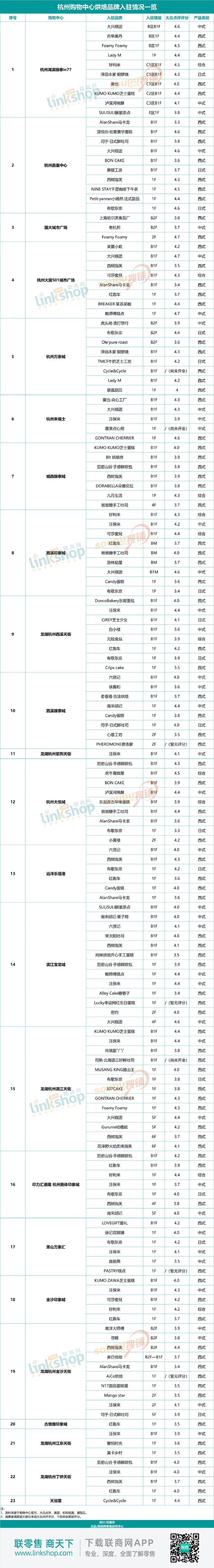 統(tǒng)計發(fā)現(xiàn),龍湖杭州濱江天街、濱江寶龍城分別以13家并列排名第一,杭州嘉里中心、龍湖杭州金沙天街、湖濱銀泰in77以10家并列排名第二。
