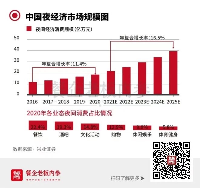 與此同時,國內夜間經濟發(fā)展水平也在快速增長。根據國元證券報告分析,預計2022全年規(guī)模將突破40萬億。從消費占比來看,當前國內夜間餐飲消費額占全天餐飲消費額已經達到四成,在夜間經濟中,酒吧業(yè)態(tài)僅次于純餐飲業(yè)態(tài)。