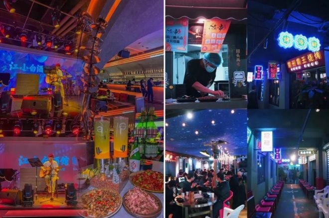 前有江小白,與太合音樂一拍即合,打出“以餐佐酒 以酒配樂”的概念,啟動DEMO概念酒館。將LiveHouse、餐吧、KTV統(tǒng)統(tǒng)搬進了占地855㎡的小酒館;