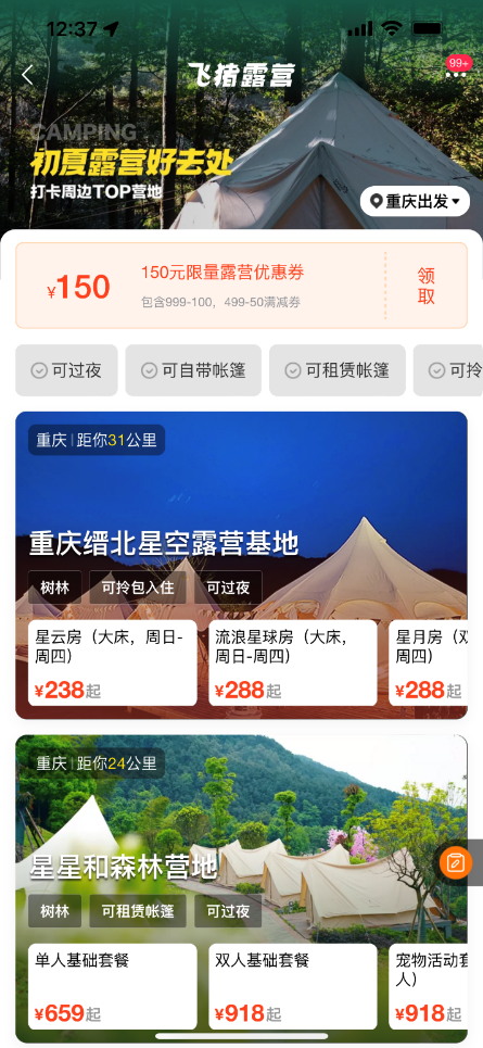 此外,在飛豬平臺(tái)上,重慶風(fēng)鳴谷露營(yíng)地、躺平露營(yíng)島、森野營(yíng)地、重慶縉北星空露營(yíng)基地、廣陽(yáng)島露營(yíng)地等多家“無(wú)痕營(yíng)地”加入計(jì)劃。即客人來(lái)的時(shí)候搭建裝備,客人離開后裝備收納回倉(cāng)庫(kù),這樣有利于保護(hù)營(yíng)地周邊的自然生態(tài),也不會(huì)影響植物的正常生長(zhǎng)。