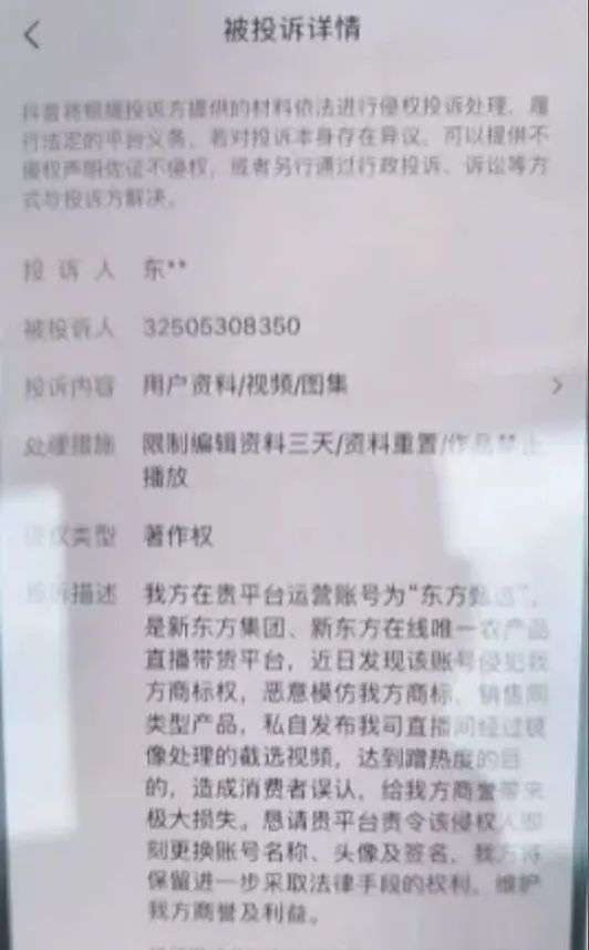 一方面,是野生玩家無授權(quán)做直播切片會面臨被投訴風險,凍結(jié)金額都算小事,可能還會有“律師函警告”。阿浩認識的朋友在最近做東方甄選的直播切片,做了三四天就被投訴侵權(quán),連著封了兩個賬號。