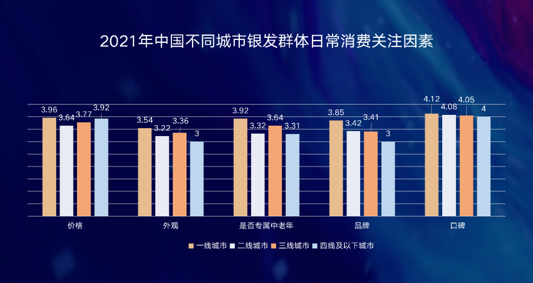 通過觀察,我發(fā)現(xiàn)銀發(fā)族有這些消費習(xí)慣:一線城市銀發(fā)族在日常消費時,對各維度都需要綜合考量,而四線及以下消費者幾乎只關(guān)注物品的口碑相傳和價格,更關(guān)注性價比。