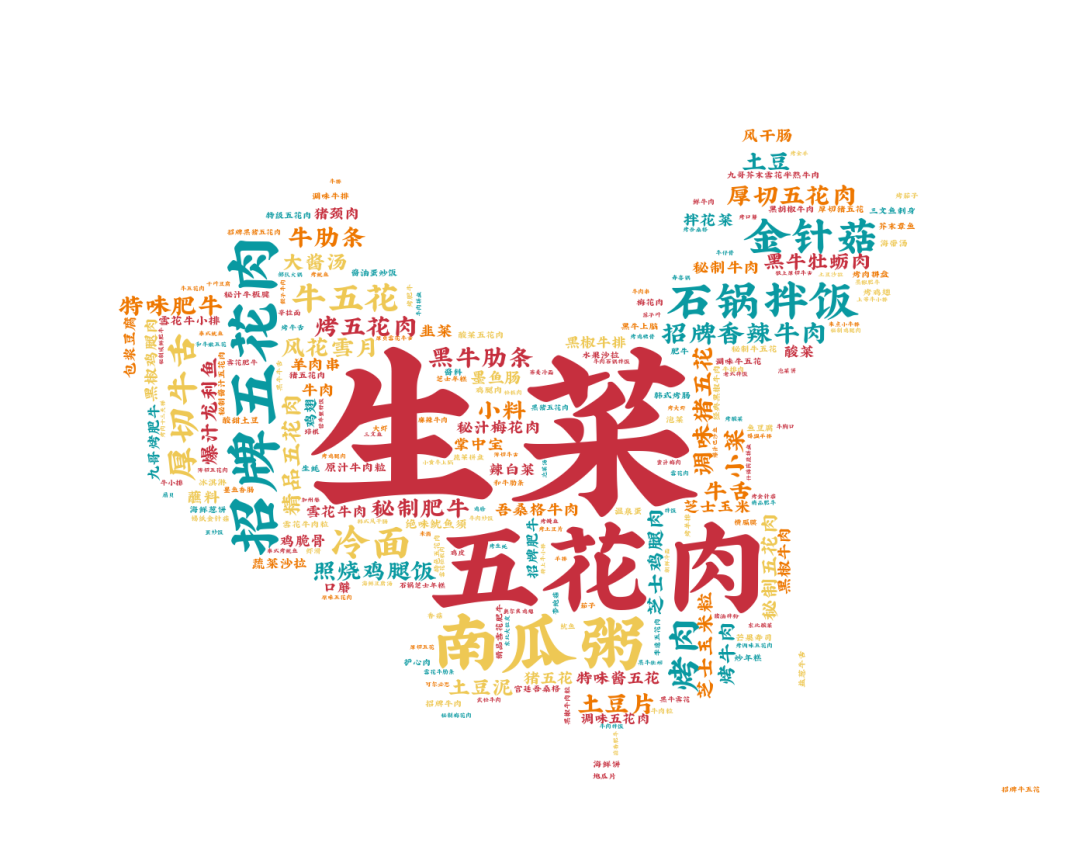 烤肉品類最受歡迎的菜品竟然是生菜、五花肉、南瓜粥。