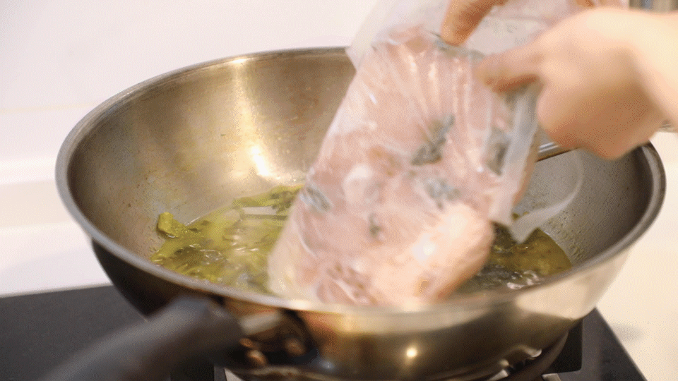 好家伙,一倒進熱油里,這個酸甜醬當場崩得到處都是,雖然比推薦做法的8分鐘減少了2分鐘烹飪時間,但廚房一時沉默,終于理解了包裝袋這個做法的良苦用心。