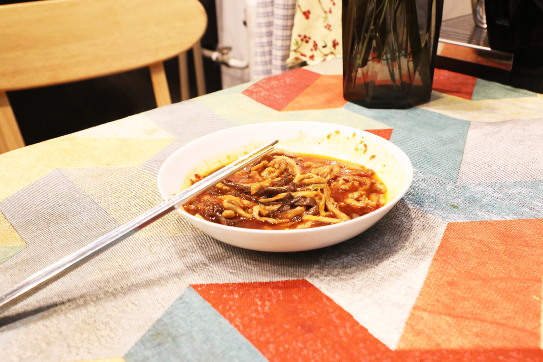 吃起來非常咸,并且由于沒有配菜而齁得要命,沒有配菜看著好怪,還是需要自己再額外準備好一點青椒作為配菜,既然如此,那我干脆直接買一塊肉做不是更好??