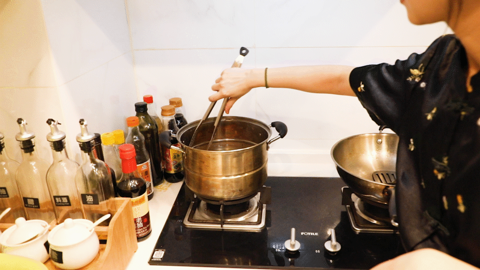 光是把水煮開就煮了10分鐘,然后再煮這個料理包,也要煮10分鐘,雖然一步到位很方便,但二十分鐘真的也有點太久了吧……而且拿出來的時候還有燙手風險: