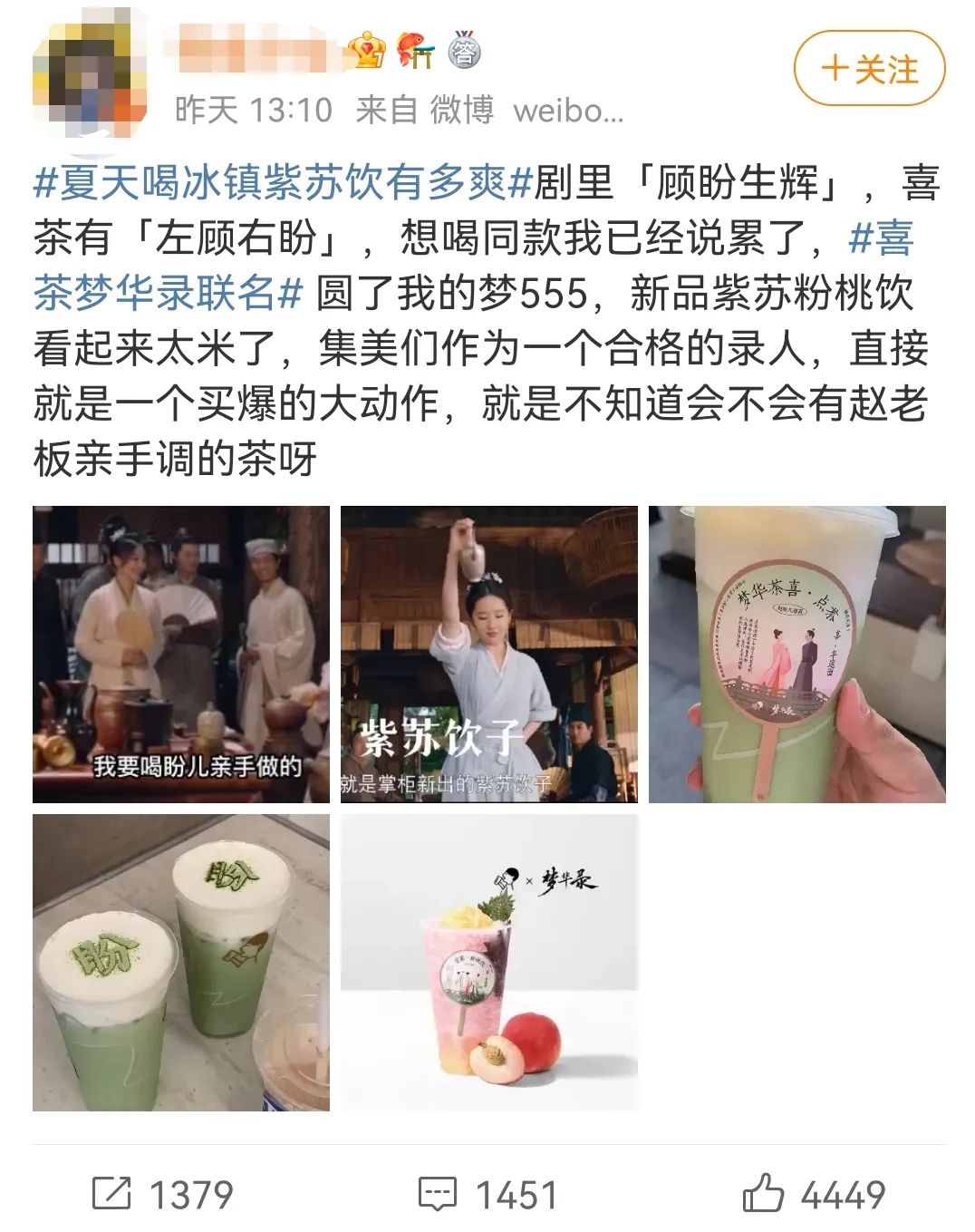 早在喜茶官宣聯(lián)名之前,就有觀眾、媒體等將兩個IP聯(lián)想到一起,《夢華錄》中趙盼兒開“半遮面”茶館的營銷方法,還被戲稱為“喜茶”套路。