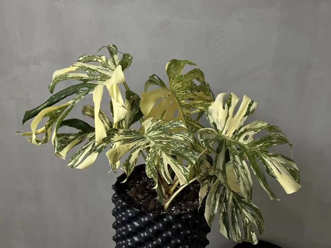 以龜背竹為例,價格500-1000元的白錦龜背竹是入門款,再往上是黃錦龜背竹、灑金龜背竹、白怪獸龜背竹,價格依次遞增,如果錦化程度均勻,比如以葉莖為中心一半綠一半白的陰陽錦,比較少見且很難復(fù)刻,一片葉子的價格就在一萬元左右。