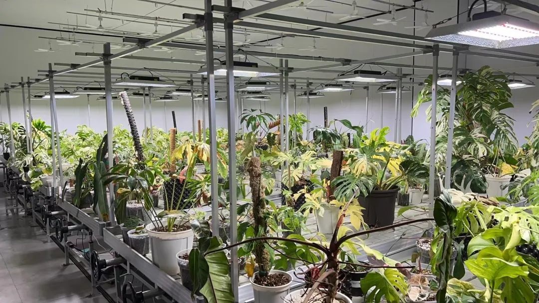 Aaron為他的近三百盆熱植準(zhǔn)備了一個80平米左右的花房,并安裝了一套全自動化設(shè)備——燈光、空調(diào)都是根據(jù)氣候定時啟動,還準(zhǔn)備了潮汐苗床,為植物自動澆水,省去了人力和時間成本。據(jù)Aaron計算,空調(diào)、燈光、苗床加上花房的裝修,總共花費在20萬元左右。