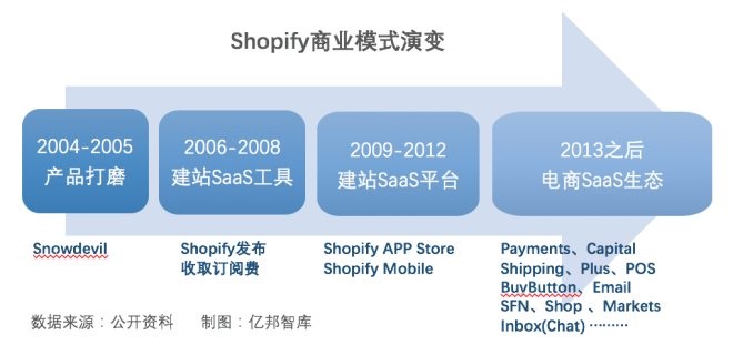 Payments的上線,標(biāo)志著Shopify開始圍繞電商構(gòu)建生態(tài)。這一時期,圍繞電商交易過程中的支付、物流、營銷、資金等需求,Shopify推出了十多個服務(wù)產(chǎn)品。