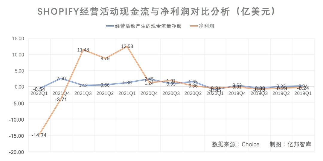 需要注意的是,2021年Shopify凈利潤突然大幅增長,源于投資的Affirm和Global-E兩家企業(yè)上市后股價大漲,帶來收益約28.598億美元,非經(jīng)營業(yè)績帶來的利潤。